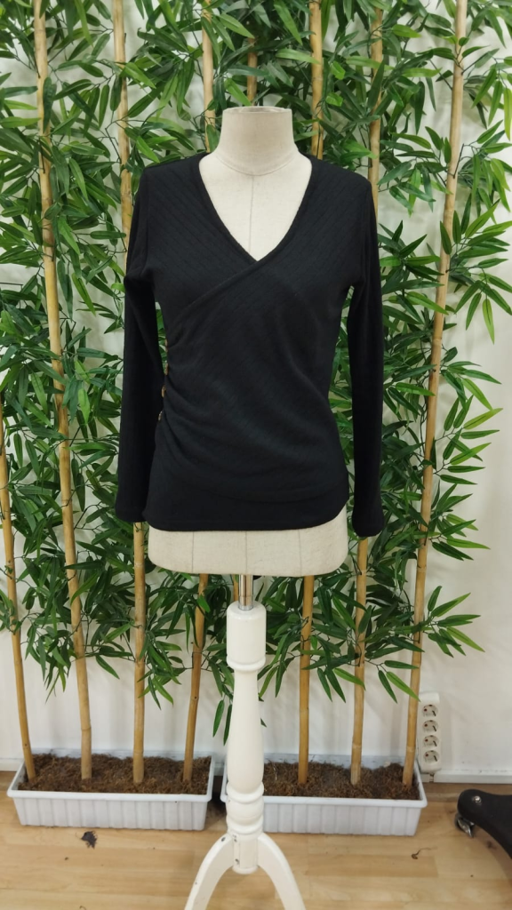 Kadın Uzun Kollu Kruvaze Yaka Yandan Düğmeli şardonlu Kaşkorse Bluz