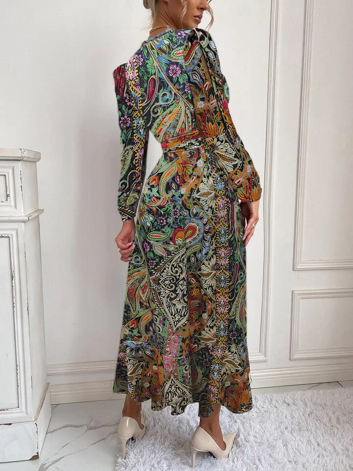 Kadın Uzun Kollu Kruvaze Yakalı Belden Kuşaklı Leopar