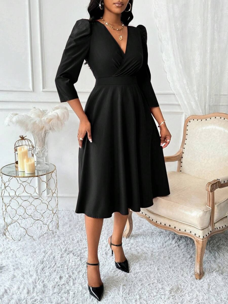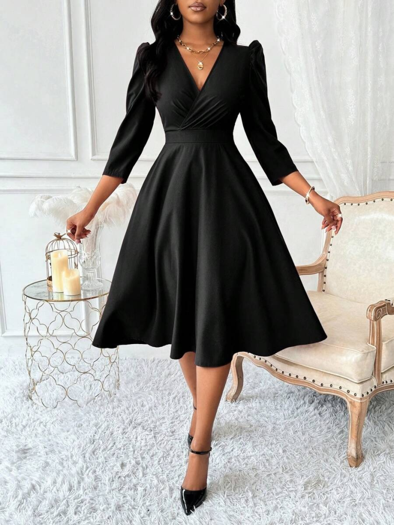 Kadın Uzun Kollu Kruvaze Yakalı Kiloş Ithal Krep Elbise