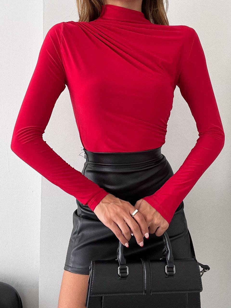 Kadın Uzun Kollu Omuz Büzgü Detay Vanezia Kumaş Bluz