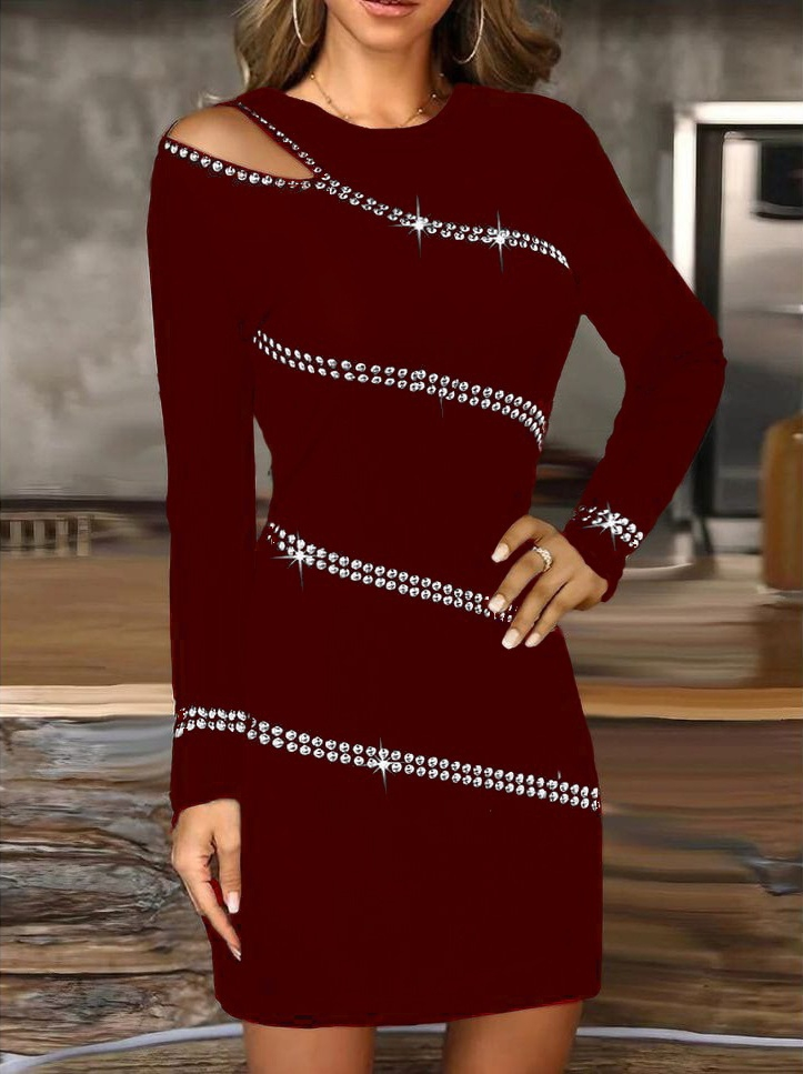 Kadın Uzun Kollu Omuz Pencere Detay Taş Işlemeli Dalgıç Mini Elbise