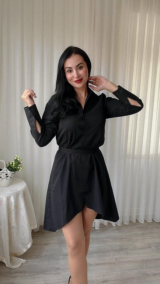 Kadın Uzun Kollu ön Kısım Kısım Arka Kısım Uzun Trikoton Gömlek Elbise