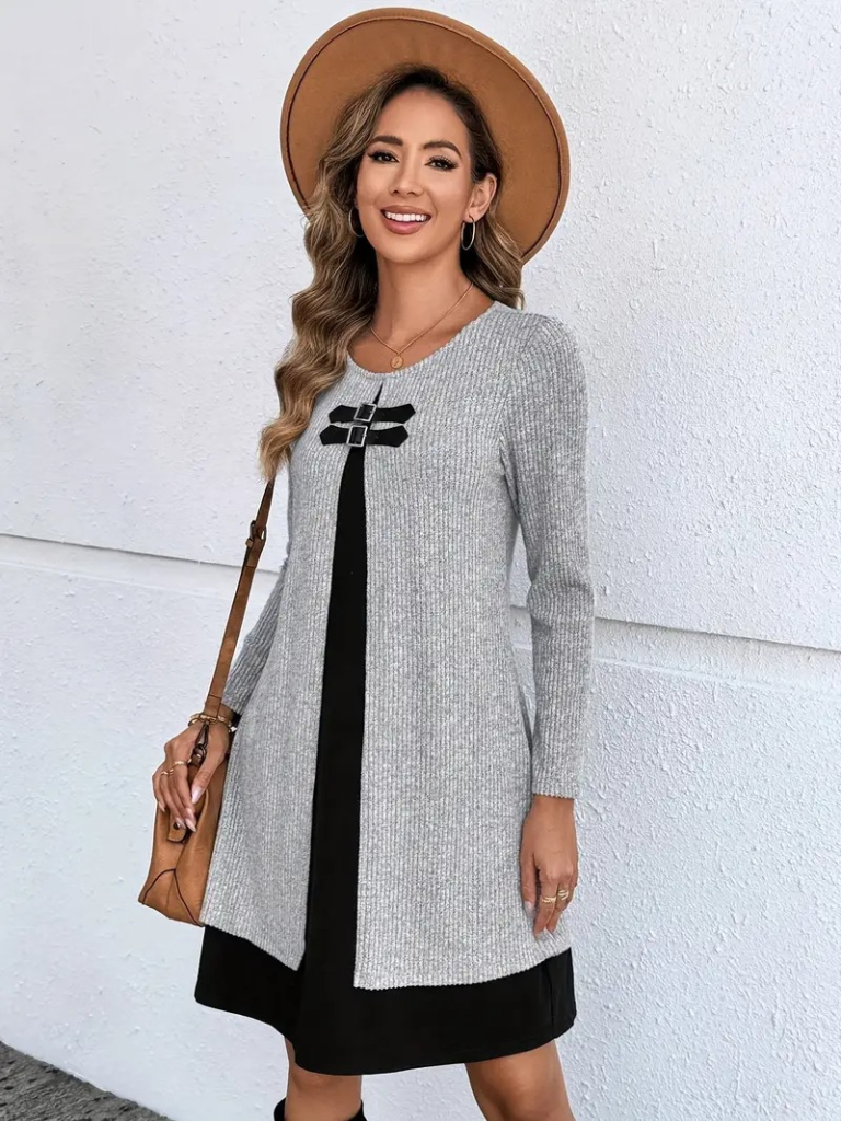 Kadın Uzun Kollu önü Tokalı şardonlu Kaşkorse Iç Kısmı Viskon Midi Elbise Ikili Takım