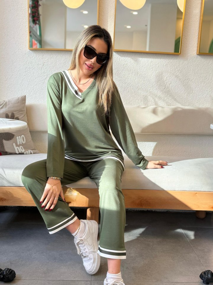 Kadın Uzun Kollu Ribana Detay Viskon Iki Iplik Ikili Takım