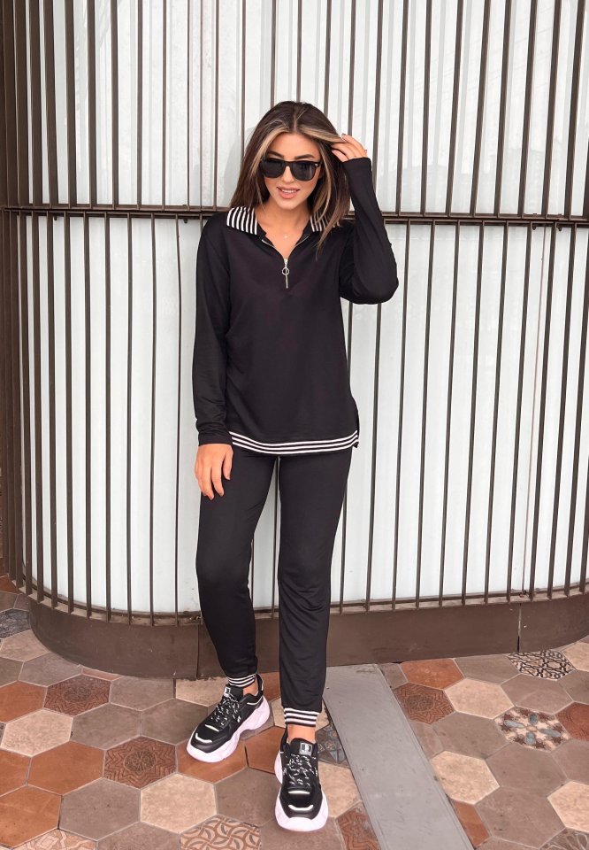 Kadın Uzun Kollu Ribana Ve Fermuar Detay Bluz Ve Yüksel Bel Pantolon 2li Takım