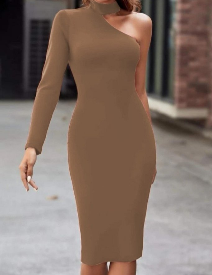 Kadın Uzun Kollu Tek Omuz Ve Kol Açık Detay Viskon Mini Boy Elbise