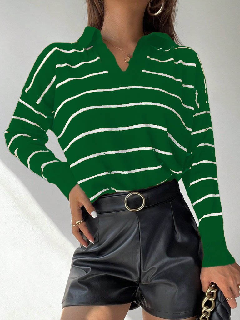 Kadın Uzun Kollu V Yaka çizgili Triko Bluz