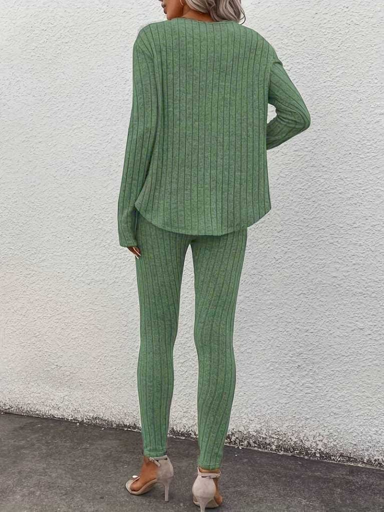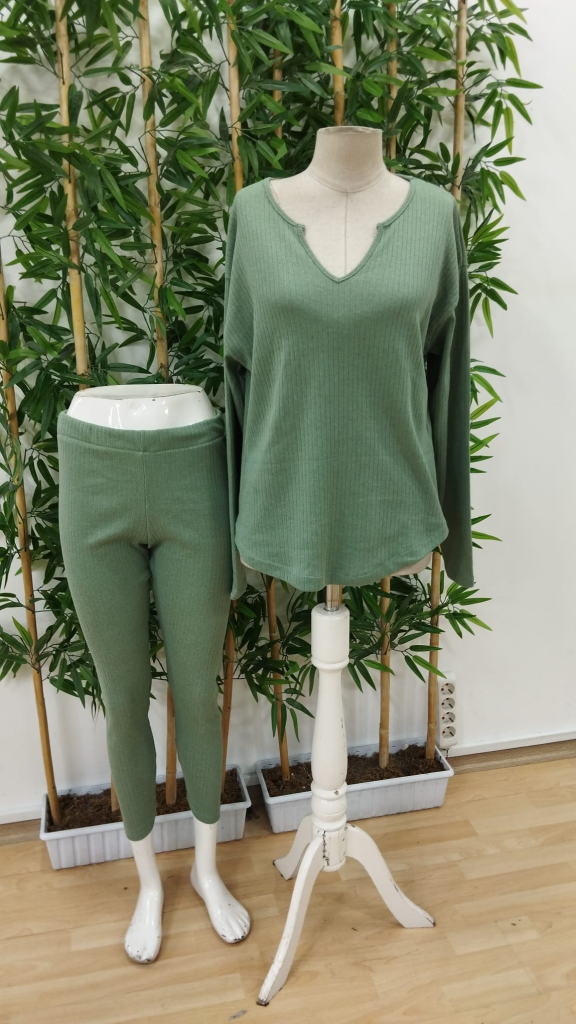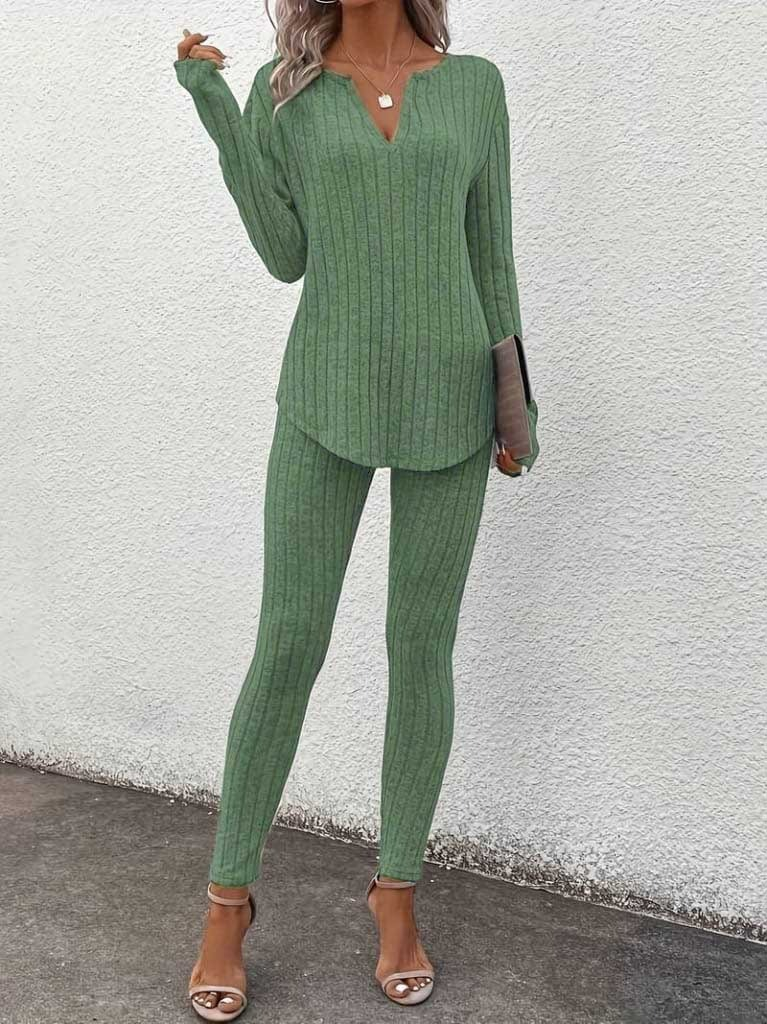 Kadın Uzun Kollu V Yakalı Bluz Alt Tayt şardonlu Kaşkorse Ikili Takım