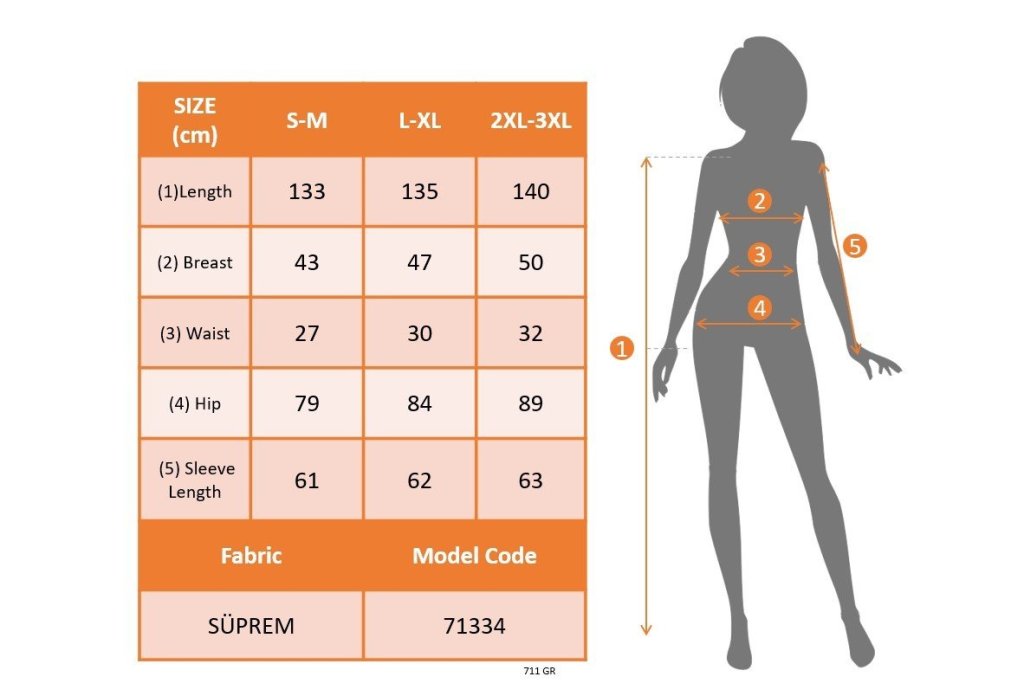 Modelin Ölçüleri: Boy:165, Kg:55, Göğüs:90, Bel:72, Kalça: 100