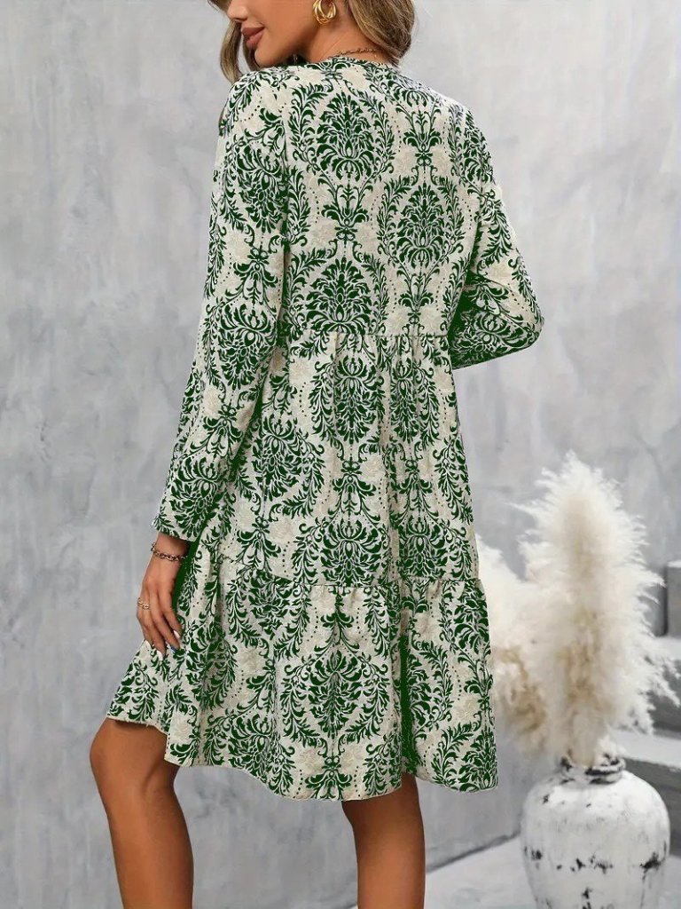 Kadın Uzun Kollu V Yakalı Fırfırlı Mini Süprem Elbise