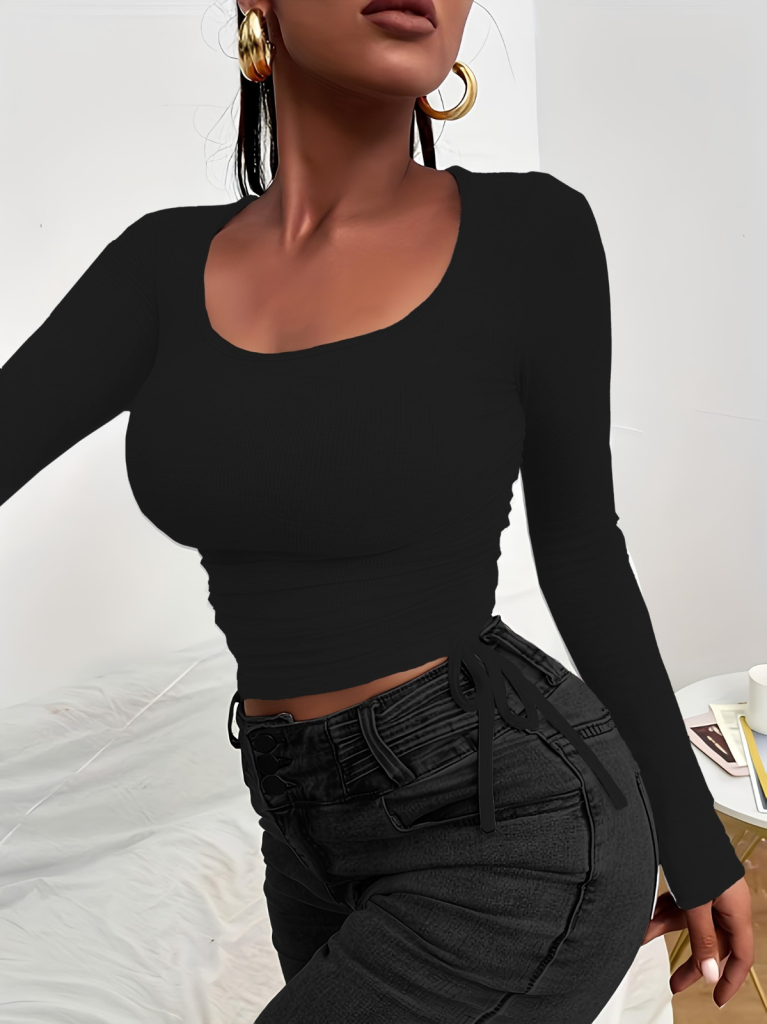 Kadın Uzun Kollu Yanlar Büzgü Detay Kaşkorse Crop