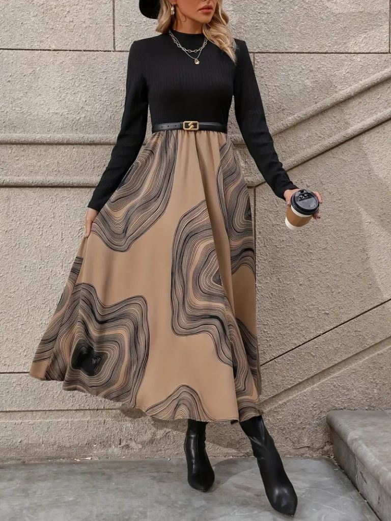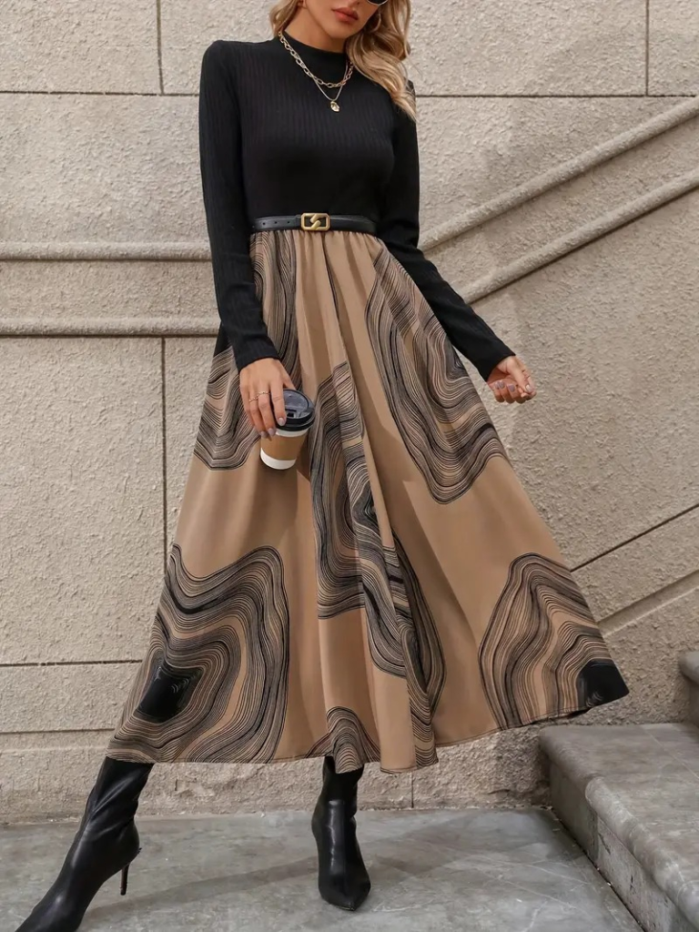 Kadın Uzun Kollu Yarı Balıkçı Yaka üst Kaşkorse Alt Süprem Uzun Elbise