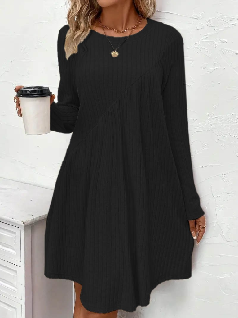 Kadın Uzun Kollu Yuvarlak Yaka Asimetrik Detaylı Kiloş şardonlu Kaşkorse Elbise