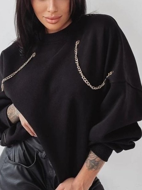 Kadın Uzun Kollu Zincir Detay Iki Iplik Bluz