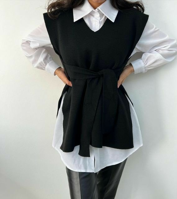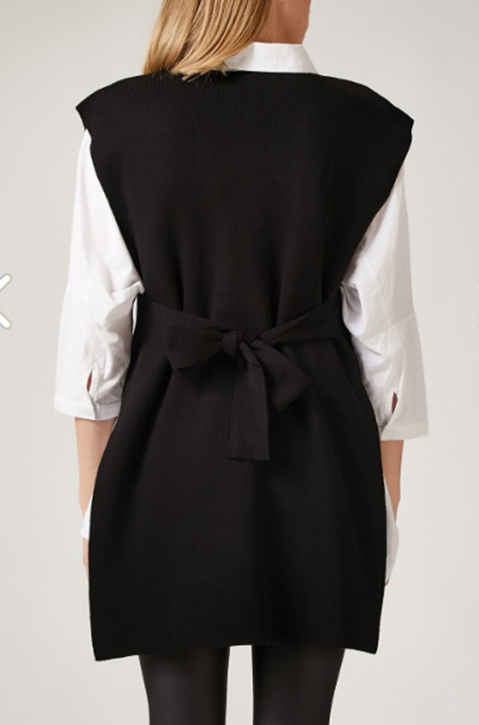 Kadın V Yaka Yırtmaç Detay Arkadan Bağlamalı Triko Bluz