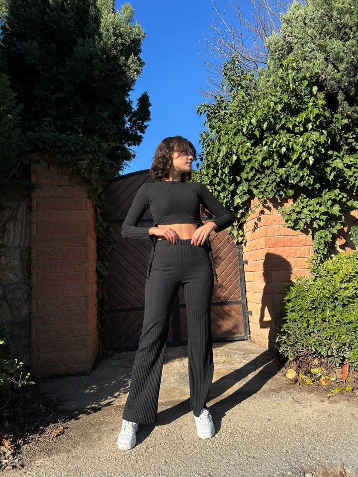 Kadın Yandan Bağlamalı Geniş Paçalı Fitil Kaşkorse İkili Takım