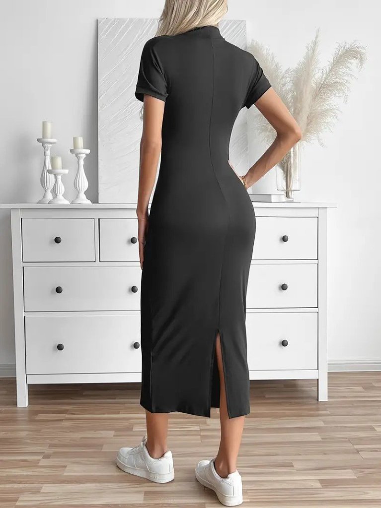 Kadın Yarı Balıkçı Yaka Yırtmaçlı Dalgıç Midi Elbise