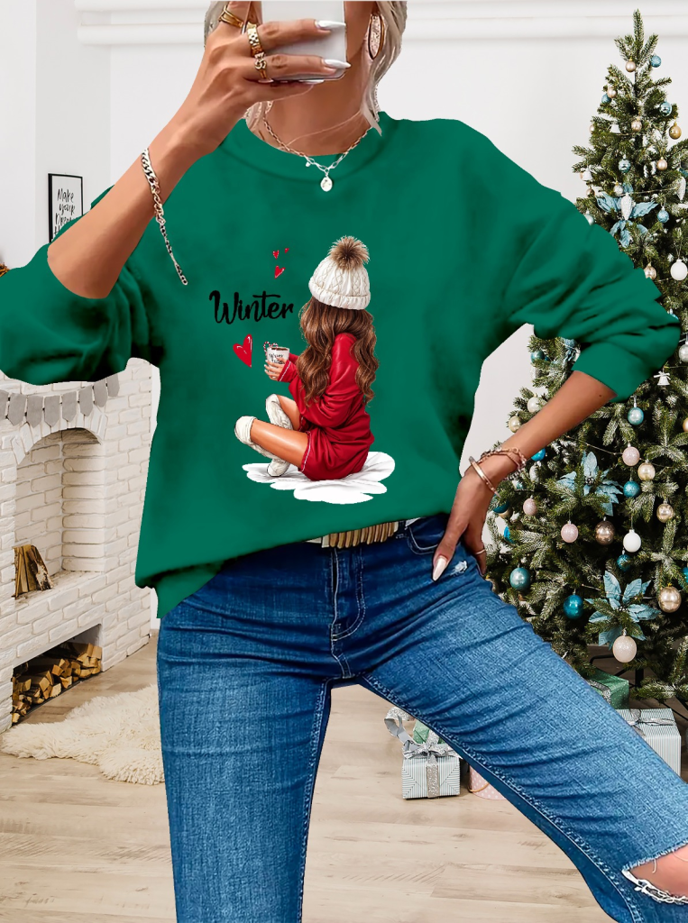 Kadın Yılbaşı özel Uzun Kollu Bisiklet Yaka Desenli Viskon Iki Iplik Bluz