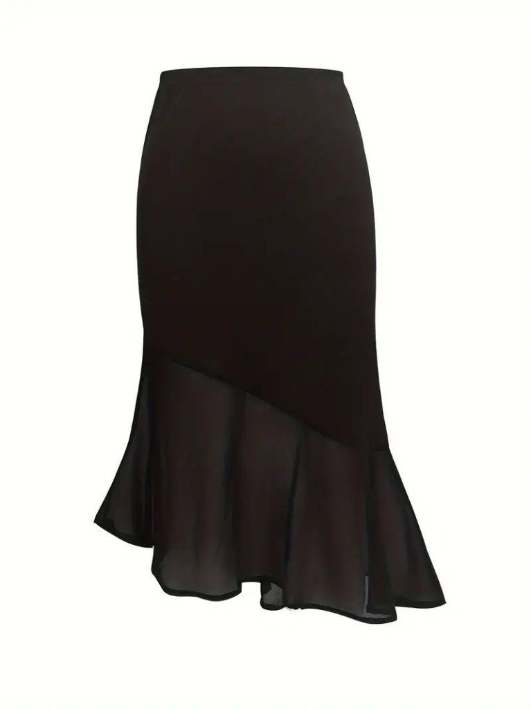Kadın Yüksek Bel Asimetrik Detaylı Ithal Krep Etek