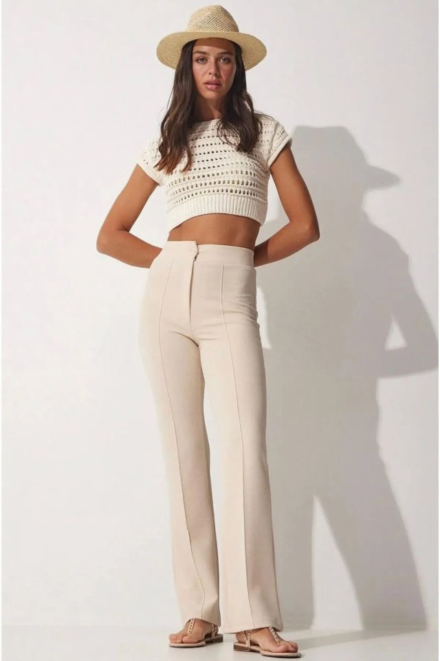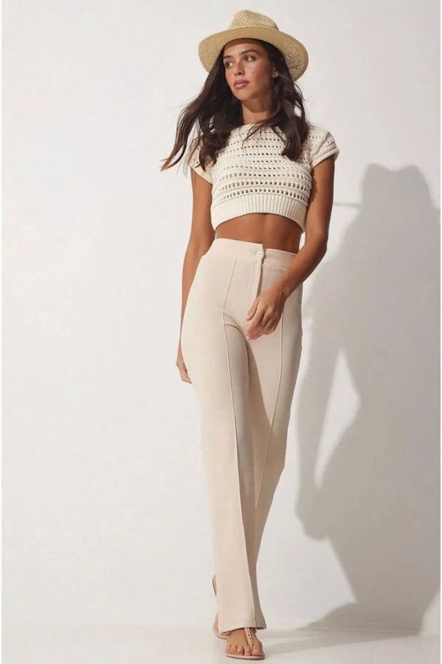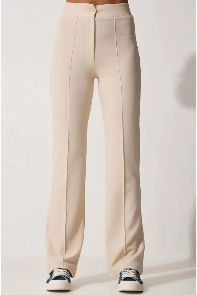 Kadın Yüksek Bel Full Likralı Krep Kumaş Pantolon