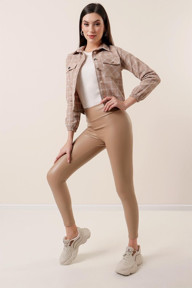 Kadın Yüksek Bel Toparlayacı Içi şardonlu Tam Kalıp Deri Tayt