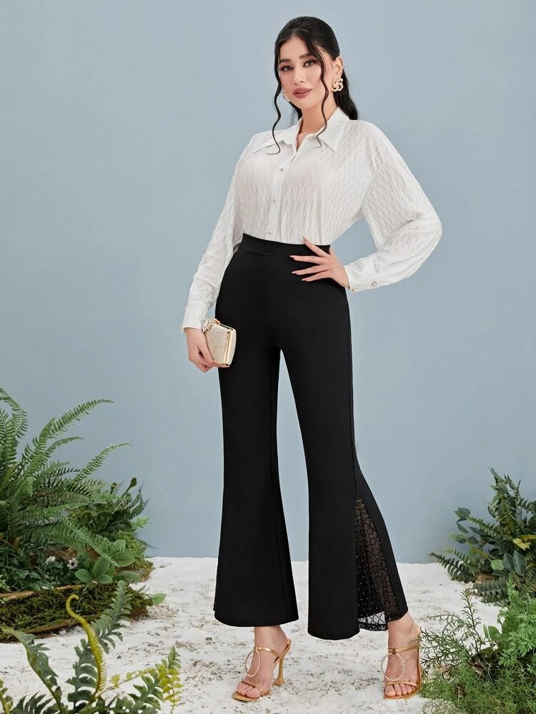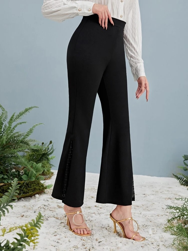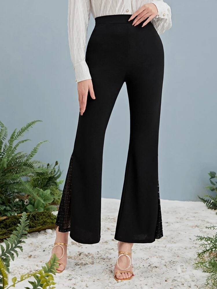 Kadın Yüksek Bel Yanları Tül Detaylı Dalgıç Tayt Pantolon