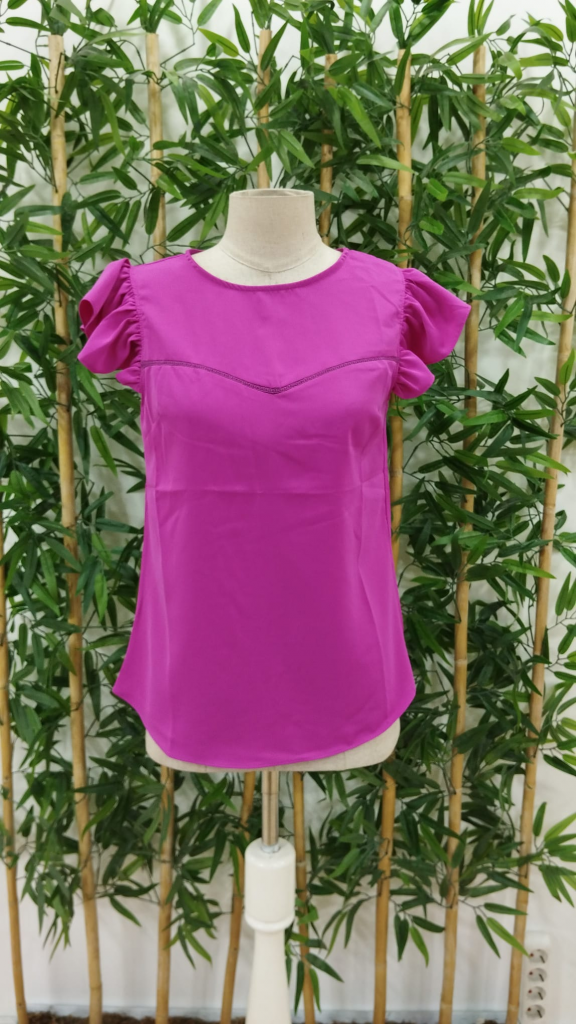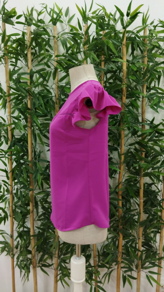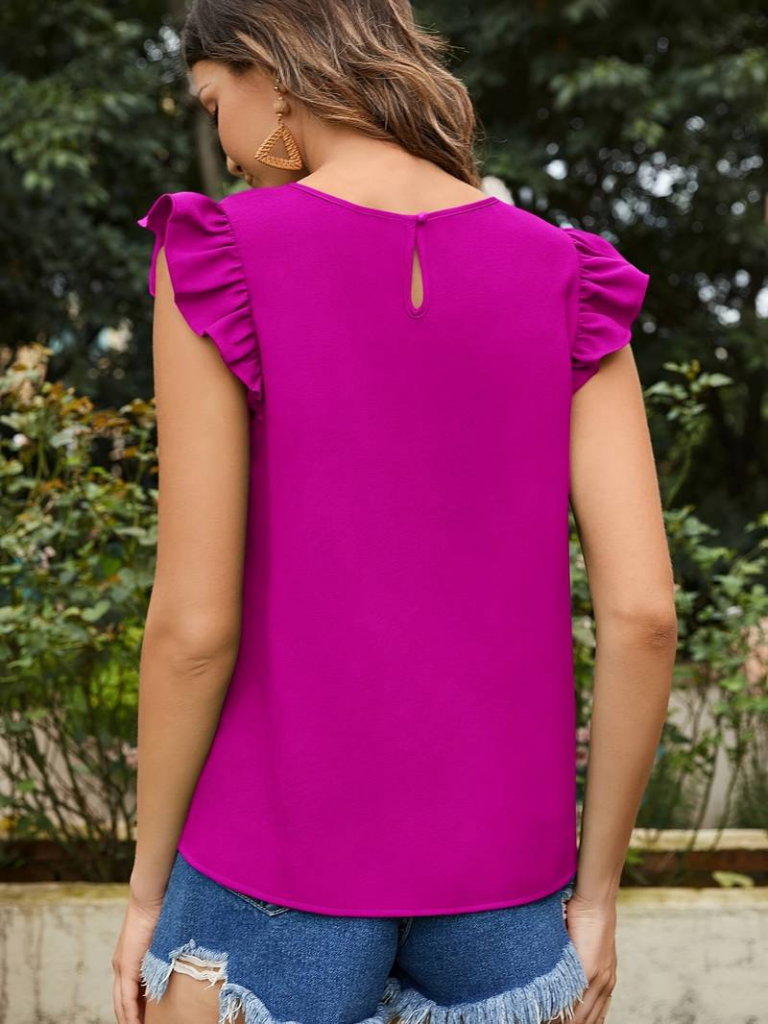 Kadın Yuvarlak Yaka Kolları Fırfırlı Krep Bluz