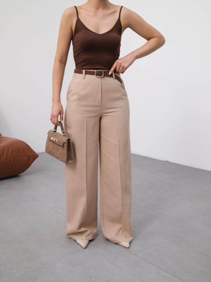 Keten Kemerli̇ Ve Dökümlü Palazzo Pantolon (Kemer Dahi̇l)