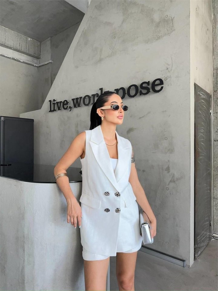KETEN YELEK - ŞORT TAKIM - Beyaz