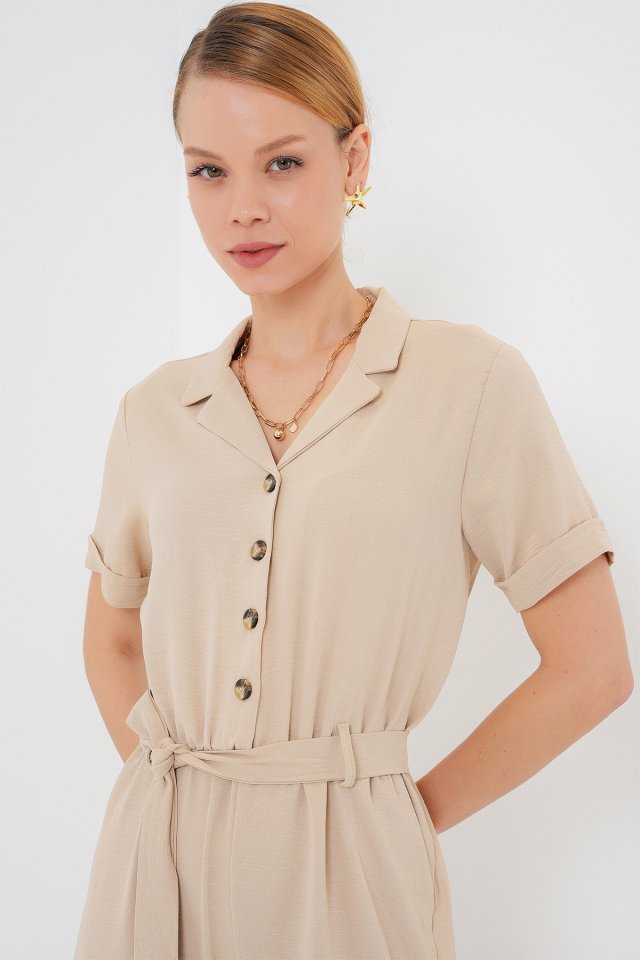 Kısa Kol Ayrobin Tulum 7030 - Krem