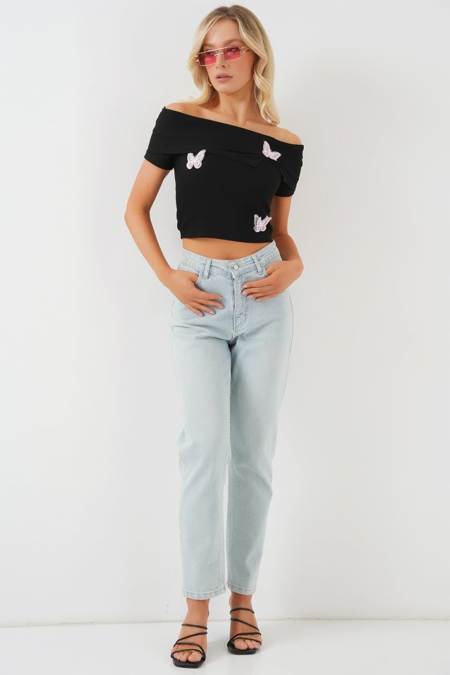 Madonna Yaka Kelebek Detaylı Bluz 957 - Siyah