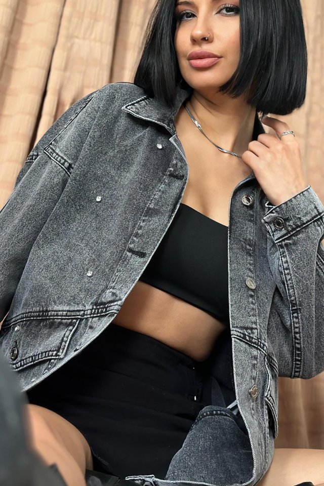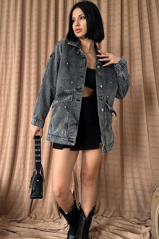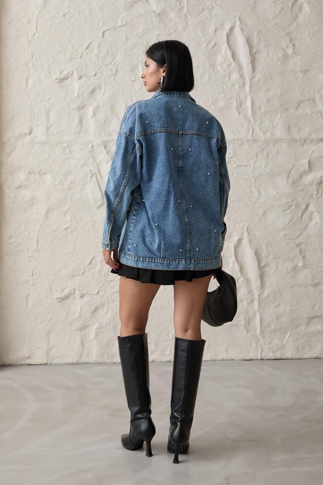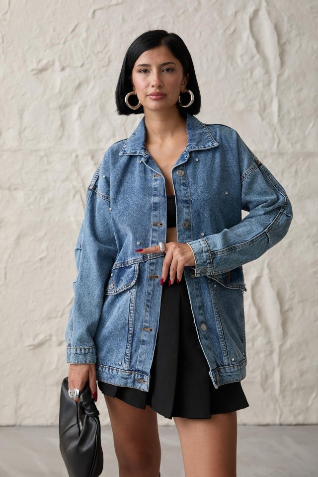 Mavi Taşlı Kot Ceket