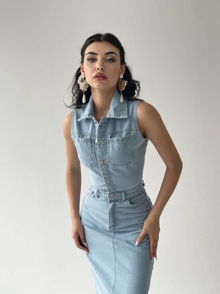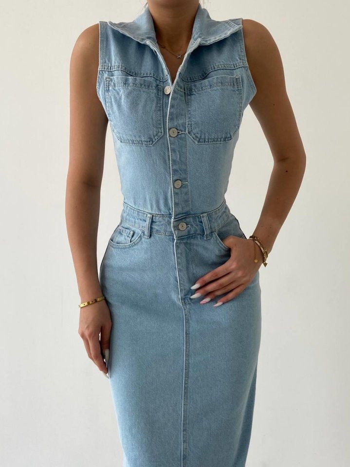 Meldia Jean Sıfır Kollu Elbise