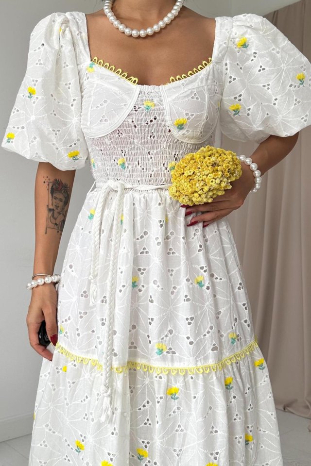 Nar Çiçeği Dantel Detaylı Brode Elbise