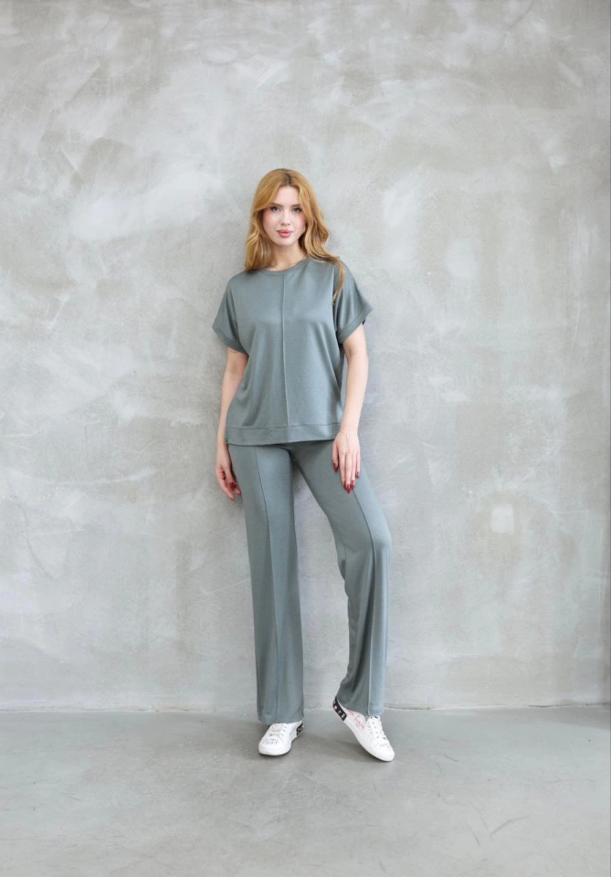 Osy Modal Yumuşak Dokulu Kumaş Bisiklet Yaka Kısa Kollu Takım - Mint Yeşili