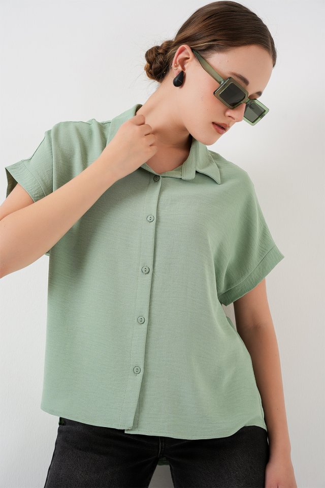 Oversize Kısa Kol Gömlek 20322 - Çağla
