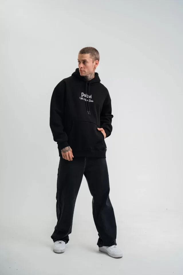 POLIZEI Premium Kalite Kapşonlu Dijital Patchli SweatShirt - Siyah