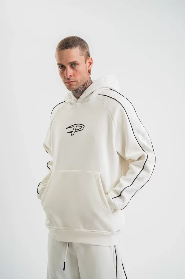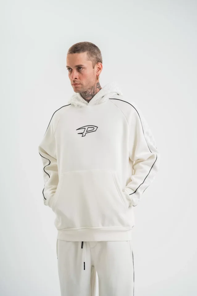 POLIZEI Premium Kalite Unisex Kapşonlu Ara Biyeli SweatShirt - Beyaz