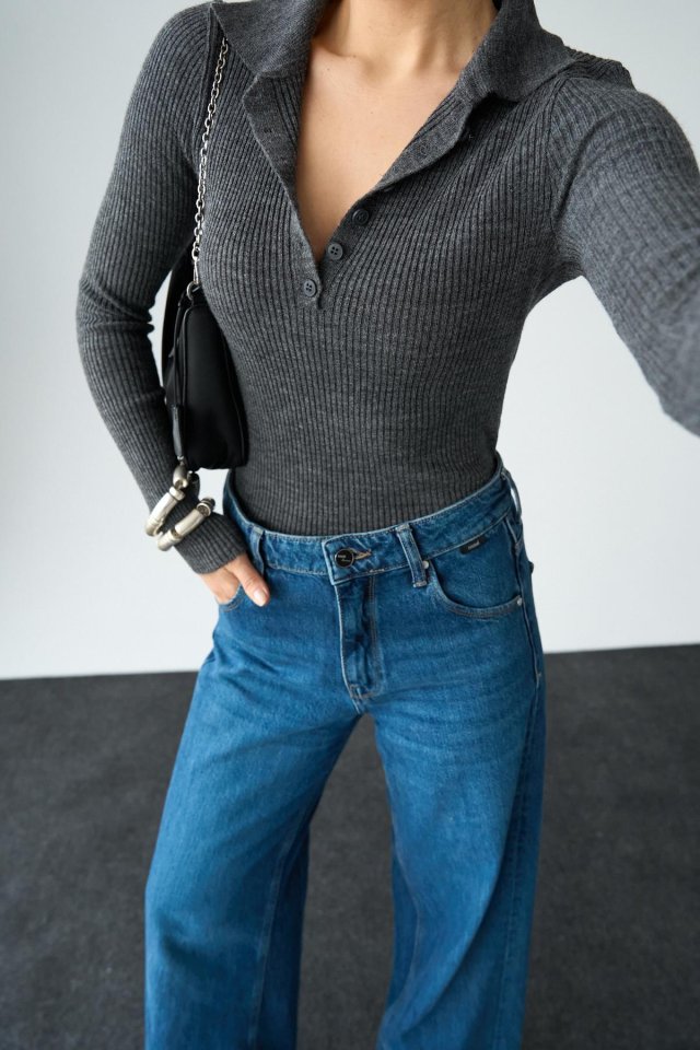 Polo Yaka 6 Düğmeli Kazak - Antrasit