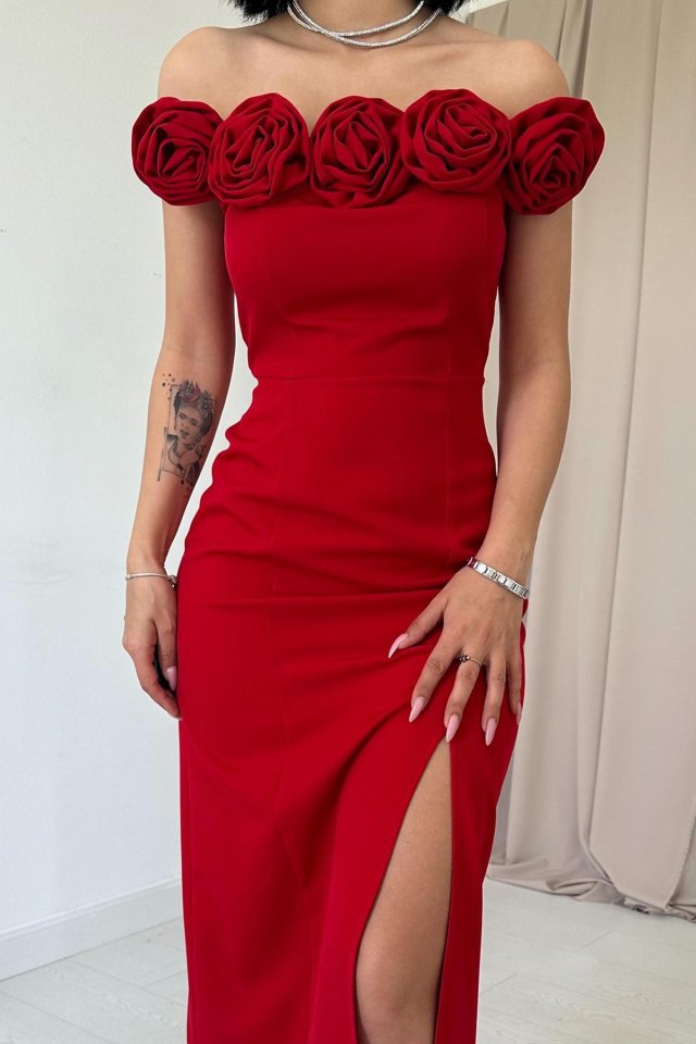 Saks Madonna Yaka Güllü Elbise