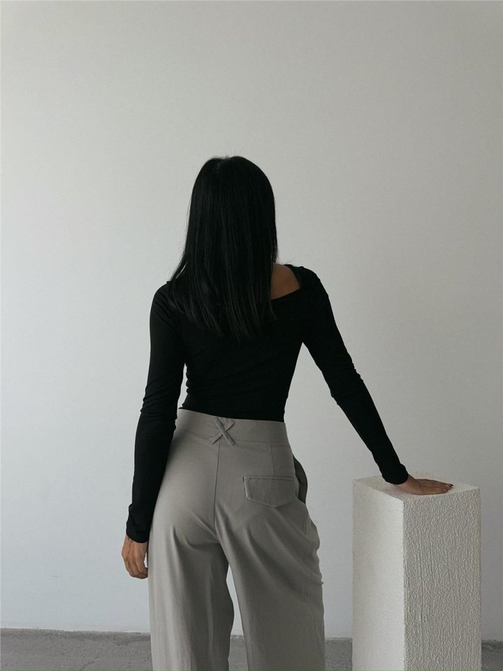 SANDY BODYSUİT ÖNDEN BAĞLAMA DETAYLI - Siyah