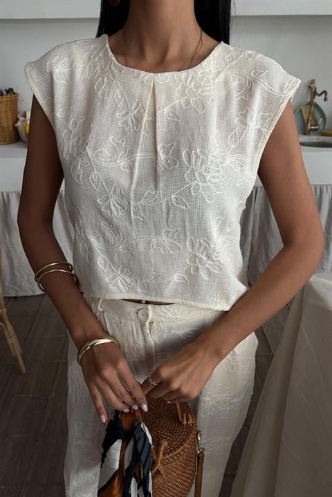 Shalina Süzüne Nakışlı Crop Takım 9796-08