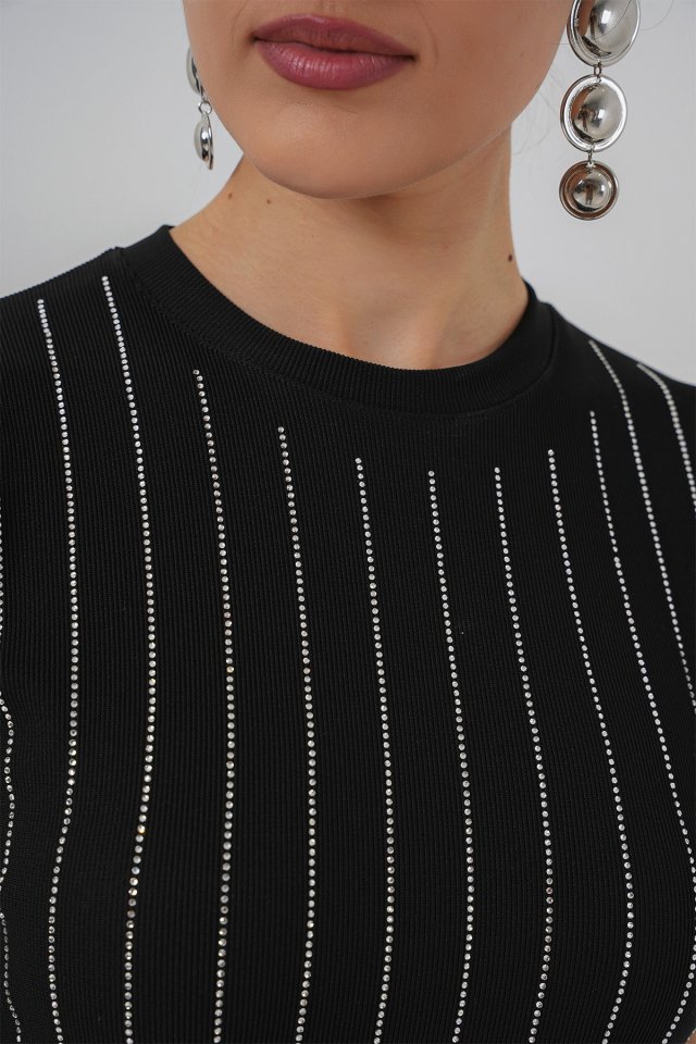Sıfır Kol Taşlı Bluz 931 - Siyah