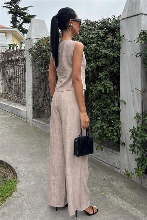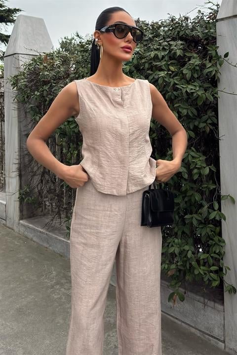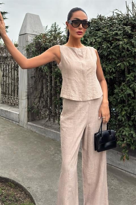 Sıfır Kollu Bluz Batik Desenli Pantolon İkili Takım 10181-08