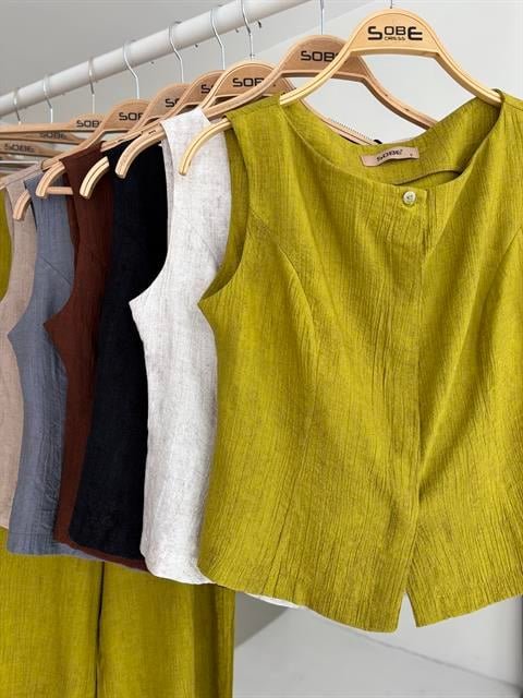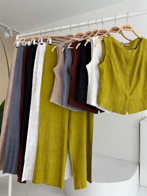 Sıfır Kollu Bluz Batik Desenli Pantolon İkili Takım 10181-08