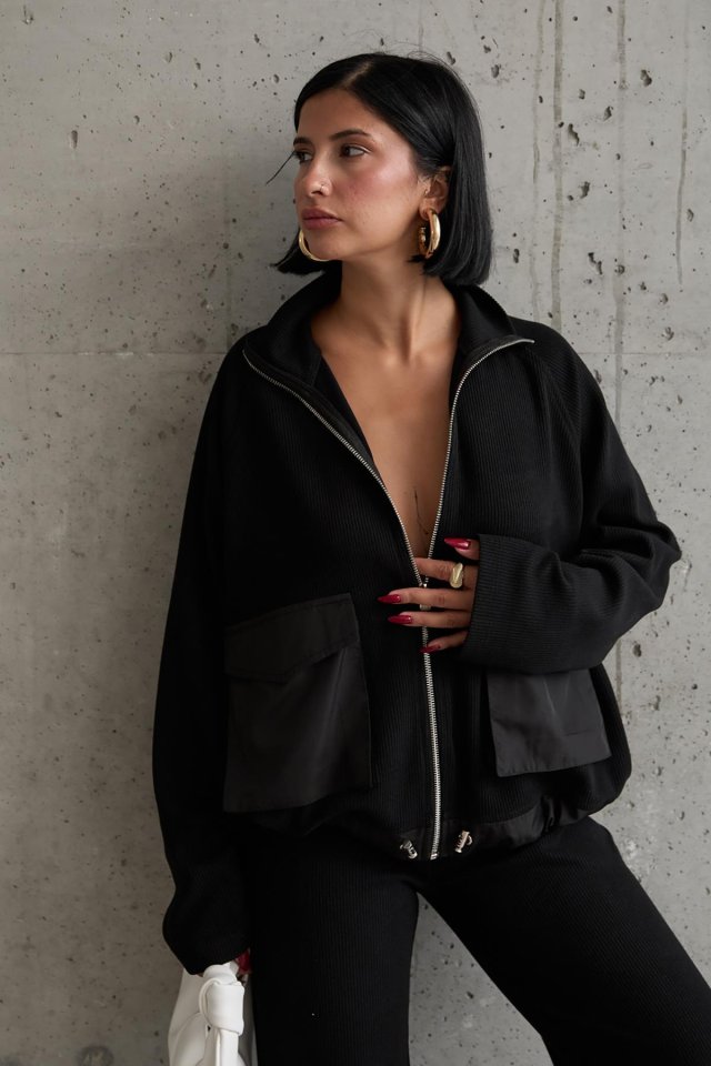Siyah Cepli Triko Ceket Ve Pantolon Takım