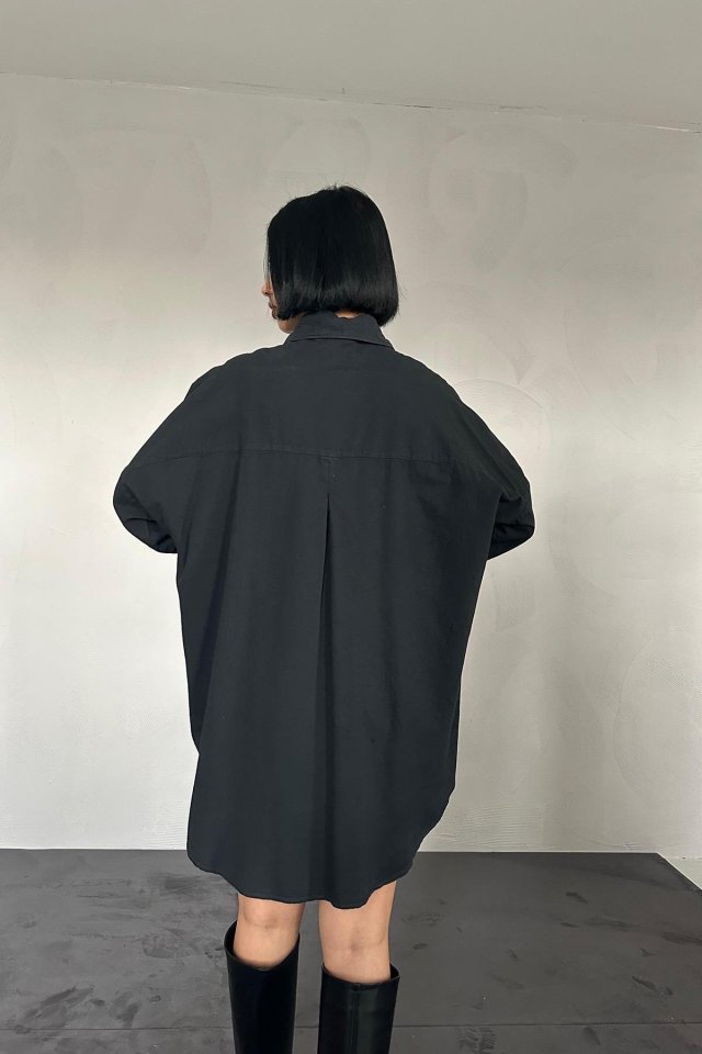 Siyah Çift Cep Kapaklı Çıtçıtlı Gömlek