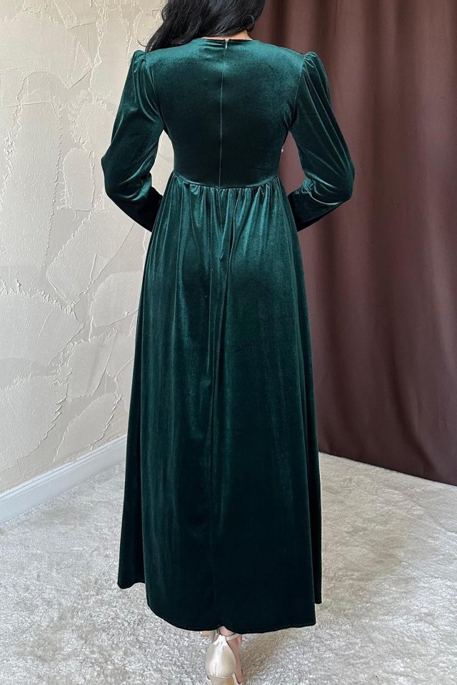 Siyah Göğüs Altı Taşlı Elbise