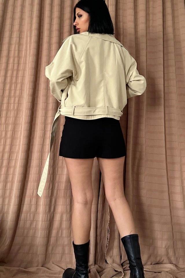 Siyah Kemerli Kısa Trech Ceket