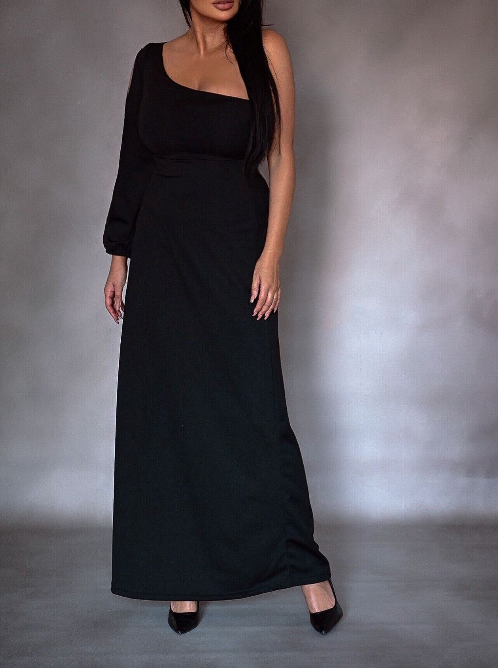 Tek Omuz Açık Derin Yırtmaçlı Krep Tam Boy Elbise